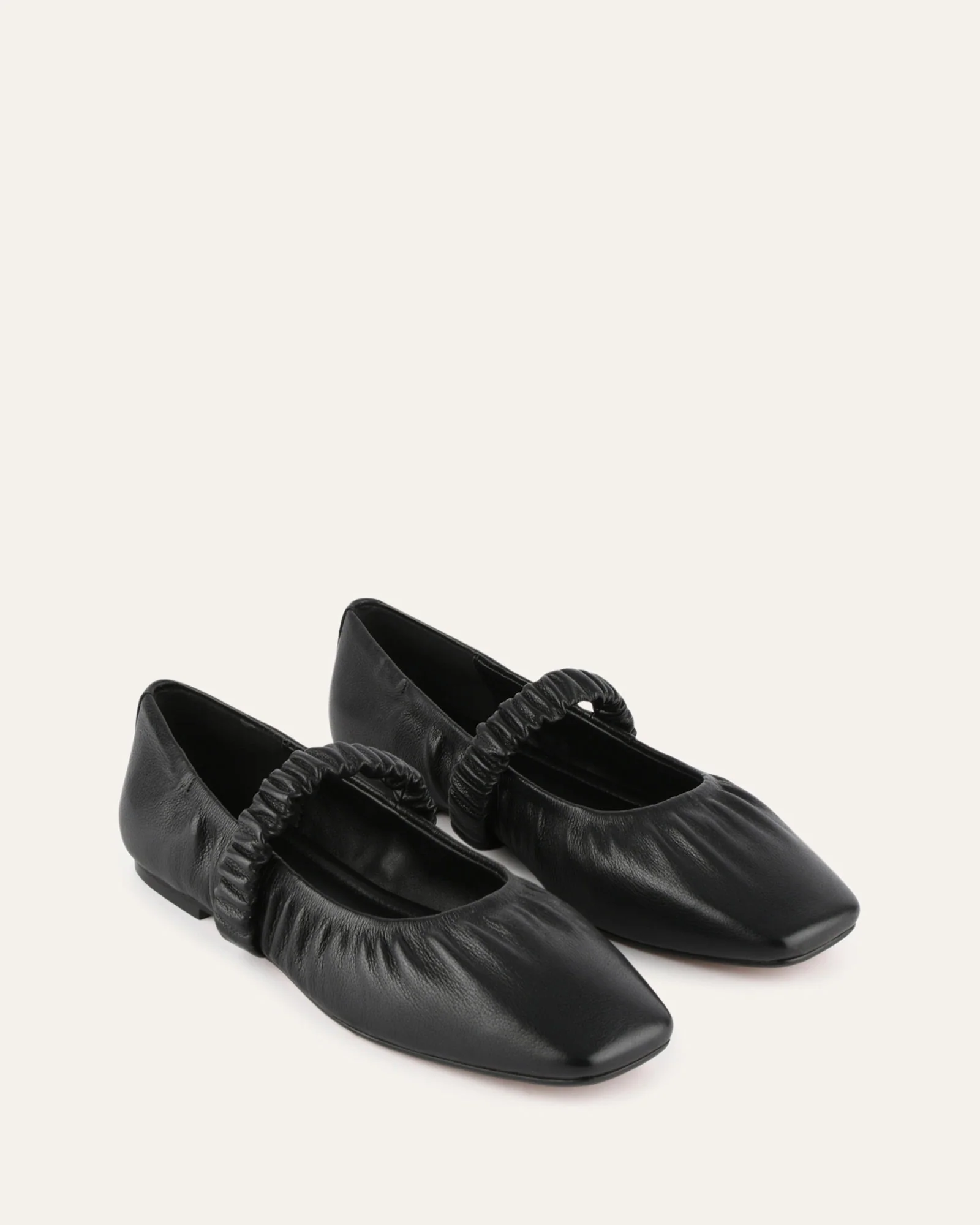 Add a new staple to your wardrobe with KEELY. This scrunch flat in buttery soft leather features a single unit heel and elastic Mary-Jane strap and softly squared toe.