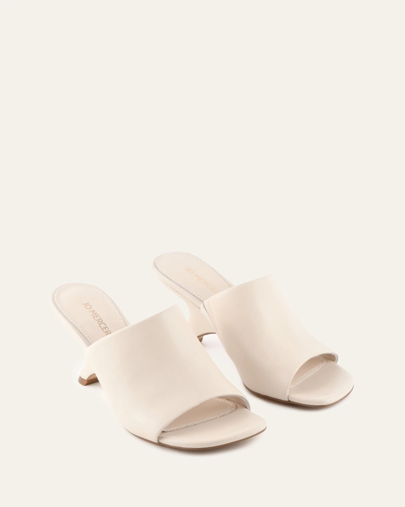 Meet MENA, a mid heel sandal featuring a sculptural wedge and angled toe shape in a modern mule silhouette.