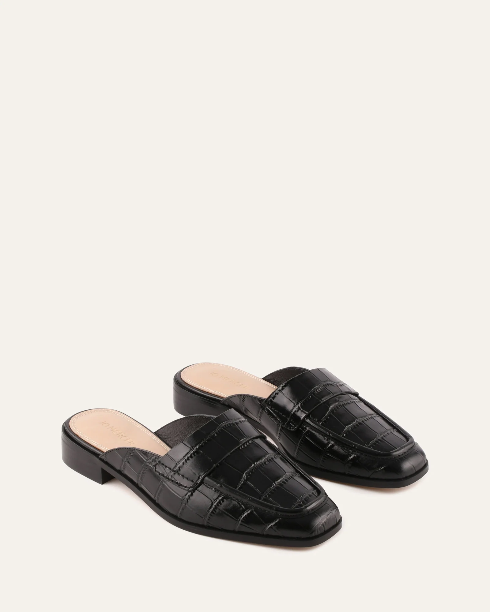 Introducing RINGO, a backless loafer with a simple vamp strap and raised piping detail.