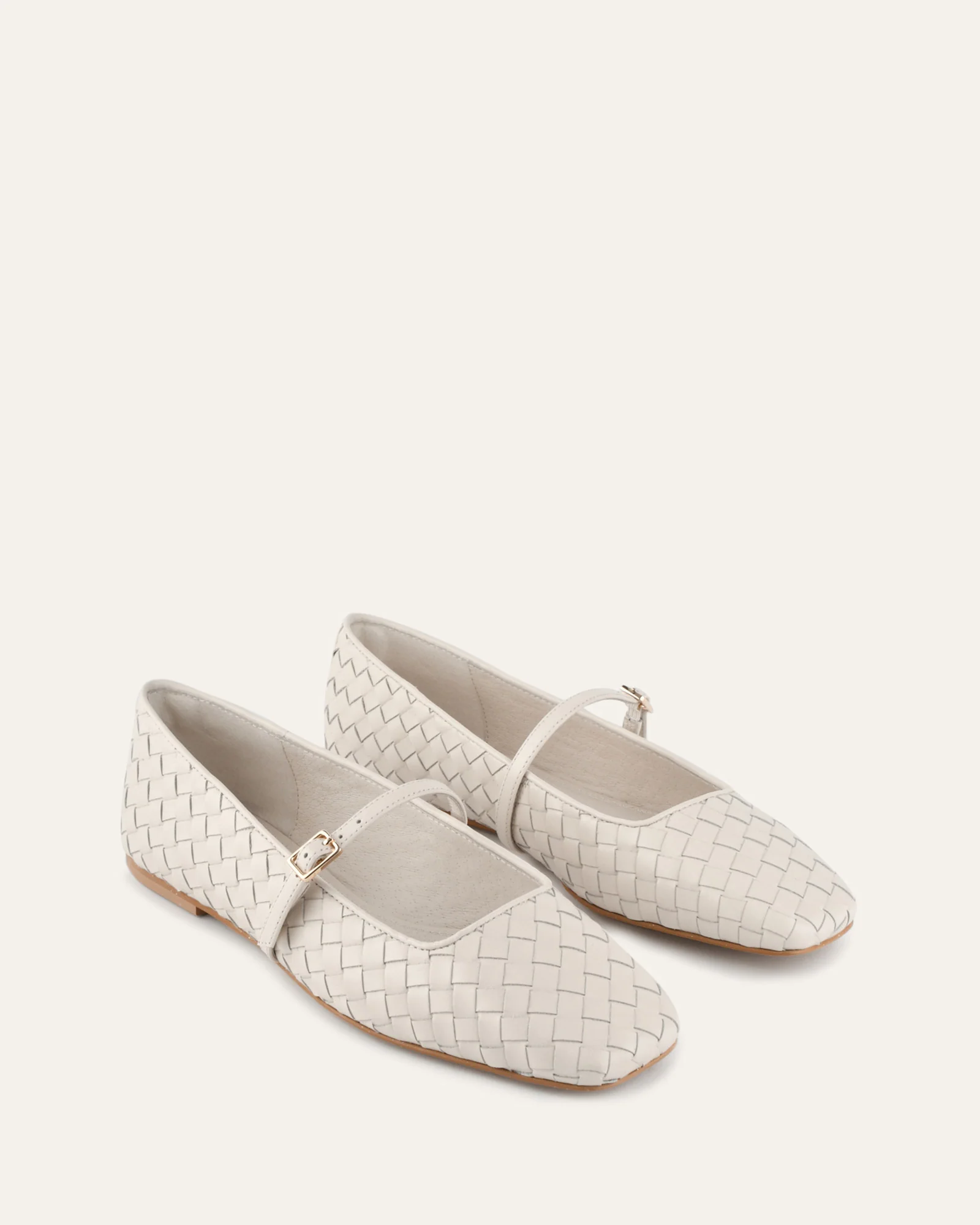The Ballet flat remains a staple and a welcome trend for any wardrobe. SAILOR is crafted from a soft woven cow leather construction with the simple and adjustable Mary-Jane strap. Finished with a softly squared toe and soft gold hardware, this is easy to pair with any outfit.