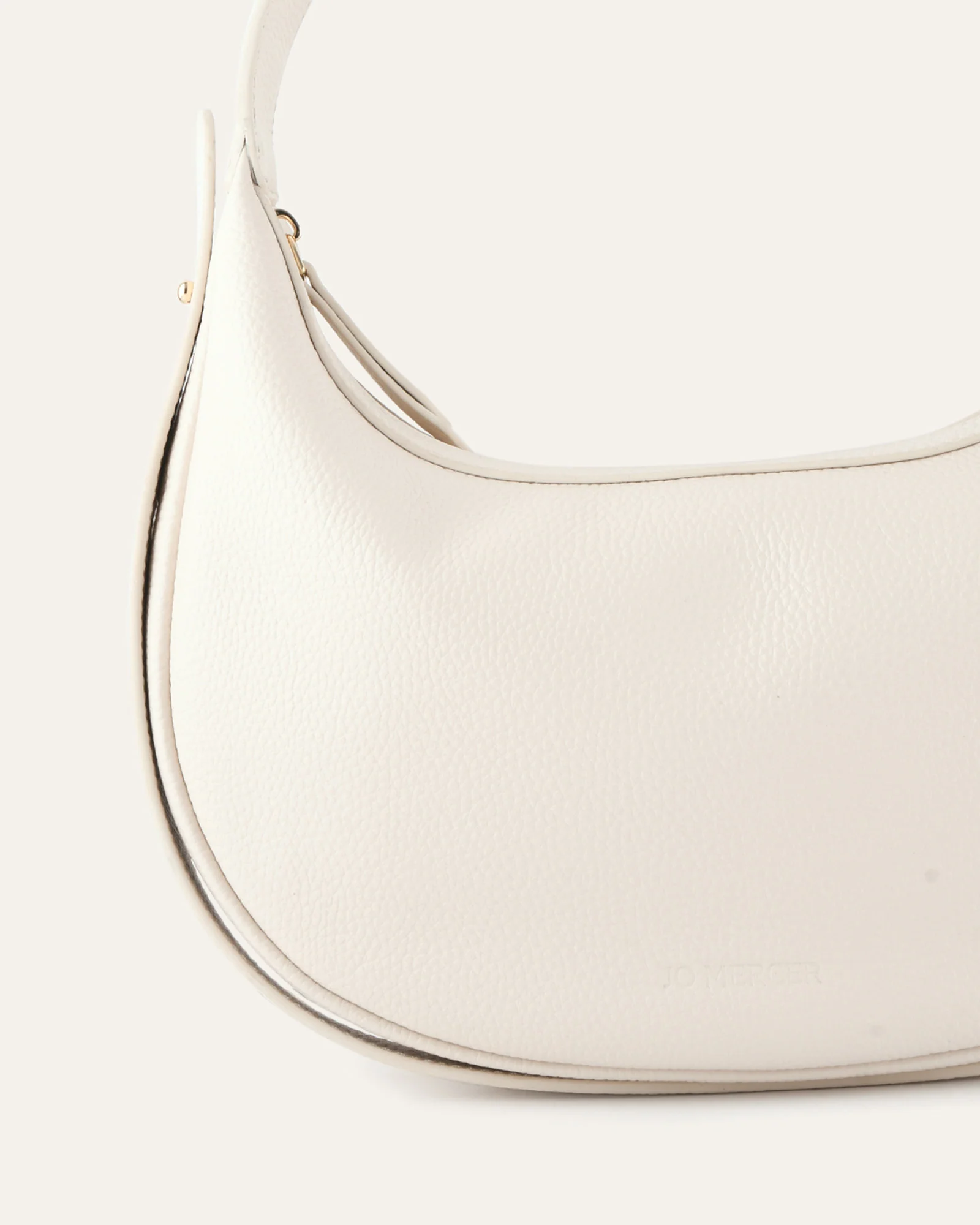 Discover the newest addition to your wardrobe, TAYA. This crescent shaped bag is crafted from pebbled leather and features a distinctive wrap-around strap detail secured with mushroom studs . With soft gold hardware and a strap drop of 30-56 cm, it offers both functionality and outfitting versatility.