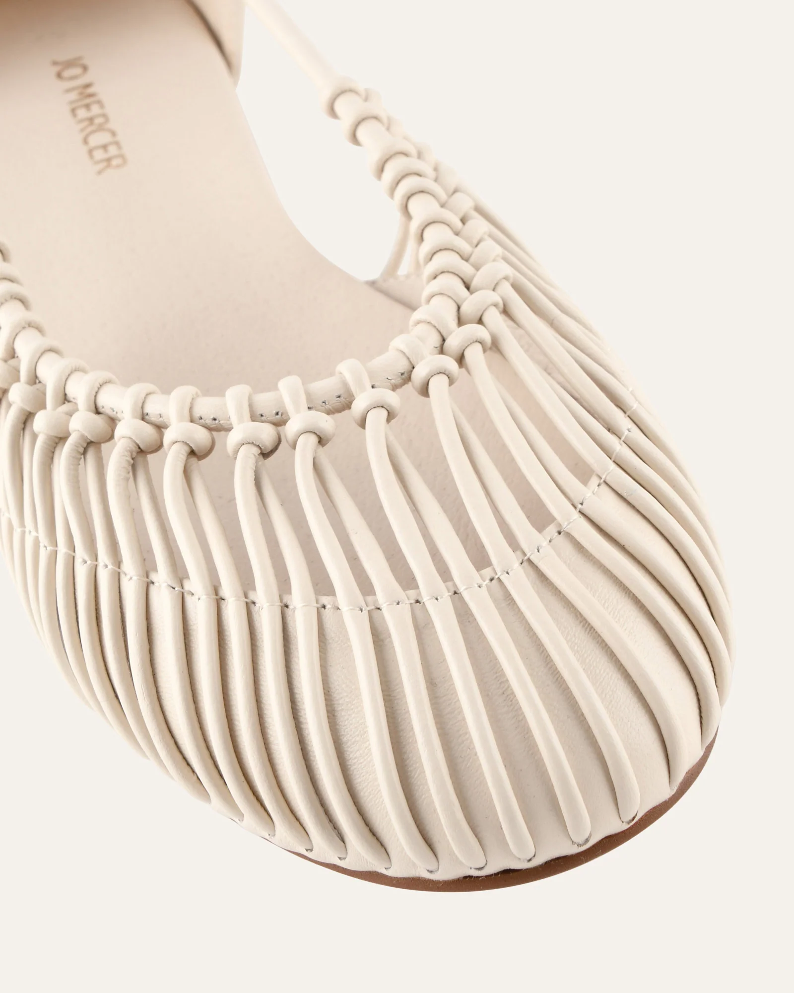 YUZU is a refined caged flat crafted with a knotted upper in kid leather. Finished with a rounded toe offering elevated ease.